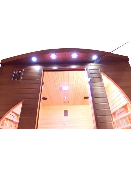 Fabriqué en épicéa du Canada, le Spectra met tout en œuvre pour que votre séance soit parfaite. Luminaires extérieurs, Audio, chromothérapie, panneau de commande déporté, autant de détails qui facilitent la vie et font de ce sauna un best seller.