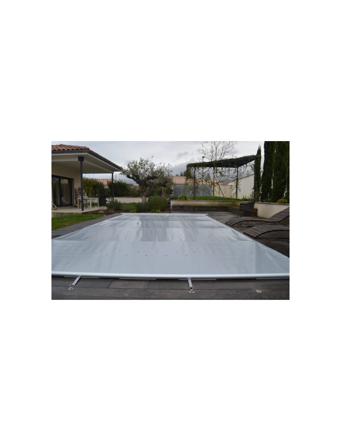 De Progress 650 g/m² is ontworpen voor zwembaden die extra bescherming vereisen tegen wind, regen en sneeuw, of voor eigenaars die een lange levensduur en discrete esthetiek willen. Ze beveiligt de toegang, vermindert onderhoud (bladeren, vuil), beperkt verdamping en houdt de warmte beter vast.