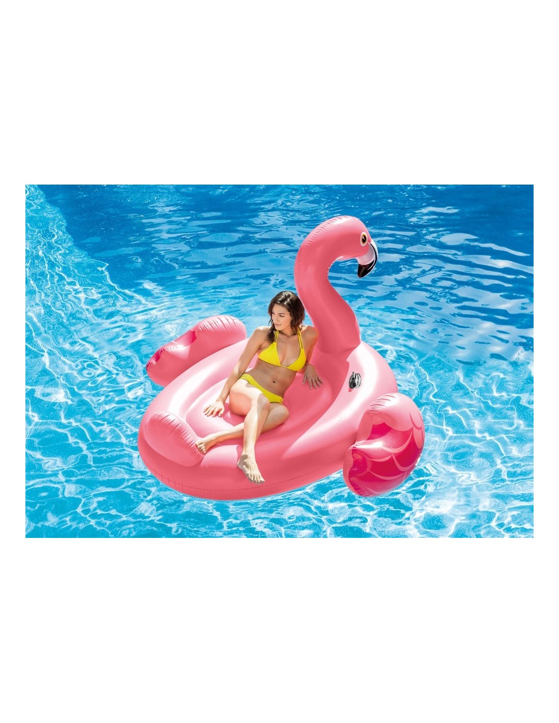 Een groot opblaasfiguur in de vorm van een flamingo.