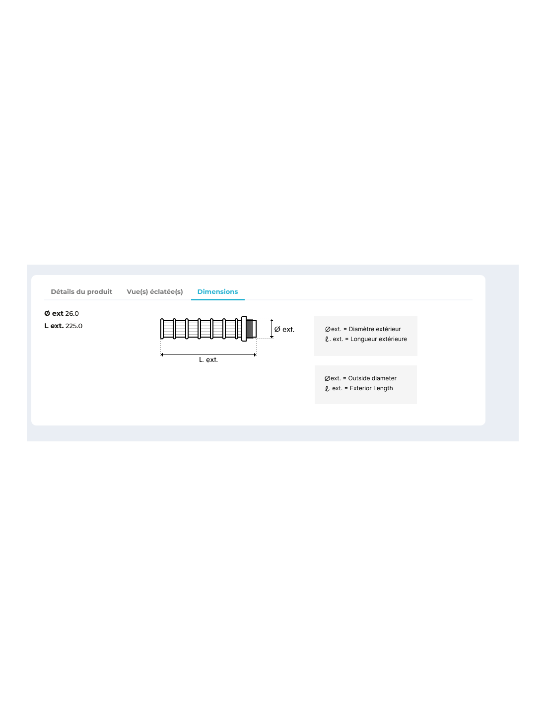 Afmetingen: Ø ext 26.0, L ext. 225.0.