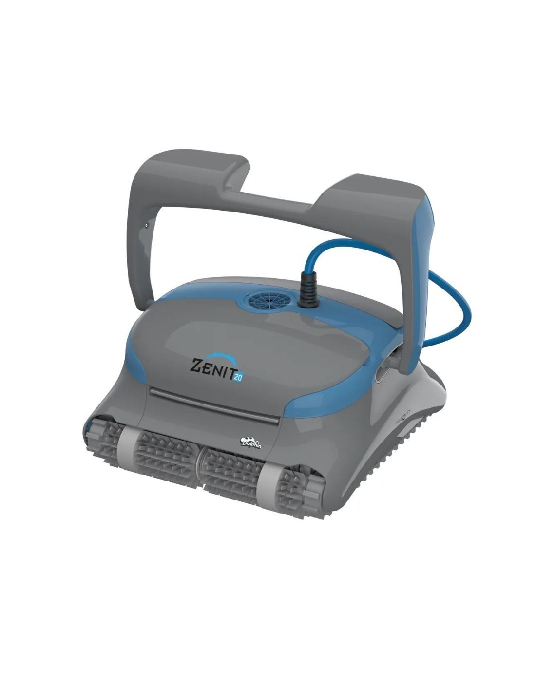 De Dolphin Zenit 20 is een betrouwbare en krachtige elektrische zwembadrobot, ontworpen om het onderhoud van zwembaden tot 12 meter eenvoudig en doeltreffend te maken. Dankzij zijn volledige reiniging van bodem, wanden en waterlijn, zijn intelligent navigatiesysteem en actieve borstels levert hij uitstekende prestaties – en dat volledig autonoom.